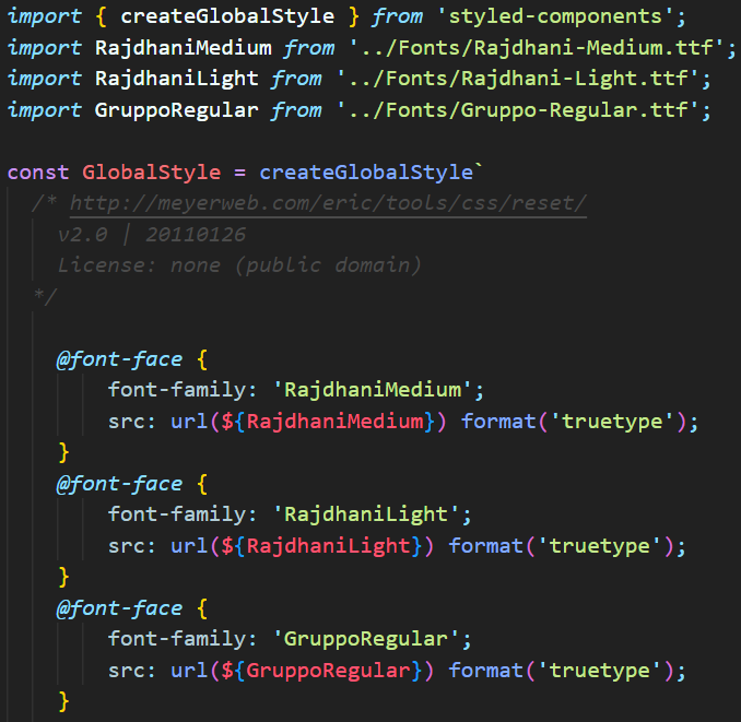 이후, 해당 글꼴들을 사용하기 위해 GlobalStyle을 만드는 파일에서 해당 폰트를 불러와야 한다.