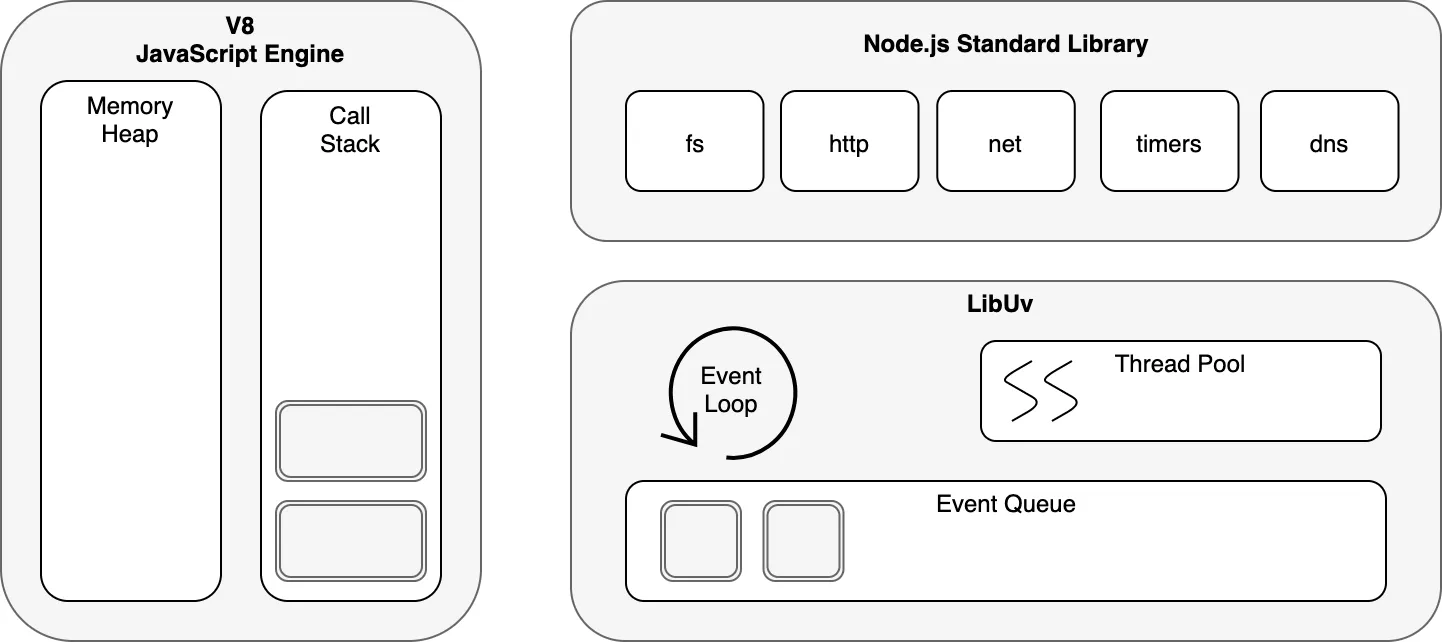 NodeJS의 공식문서에 따라 NodeJS의 구조를 그림으로 나타내면 다음과 같다.