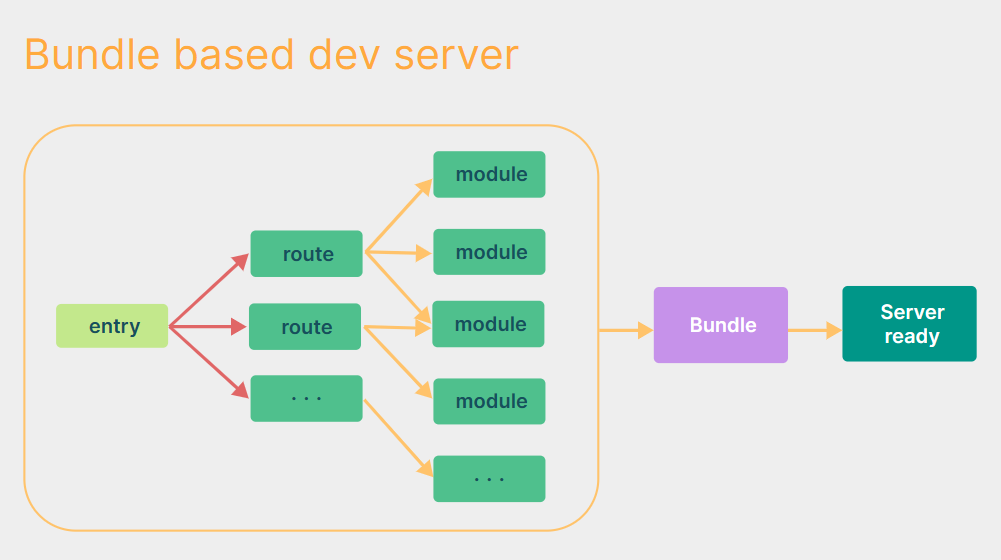 전통적인 번들 기반 방식은 위의 그림과 같은 과정을 통해 서버를 실행한다.