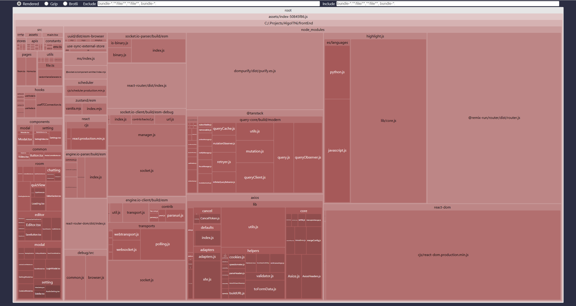 우선 빌드 결과물이 왜 이렇게 커졌는지 분석하기 위해 Vite 번들 분석 도구를 활용했다.