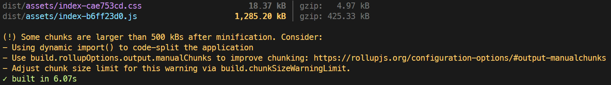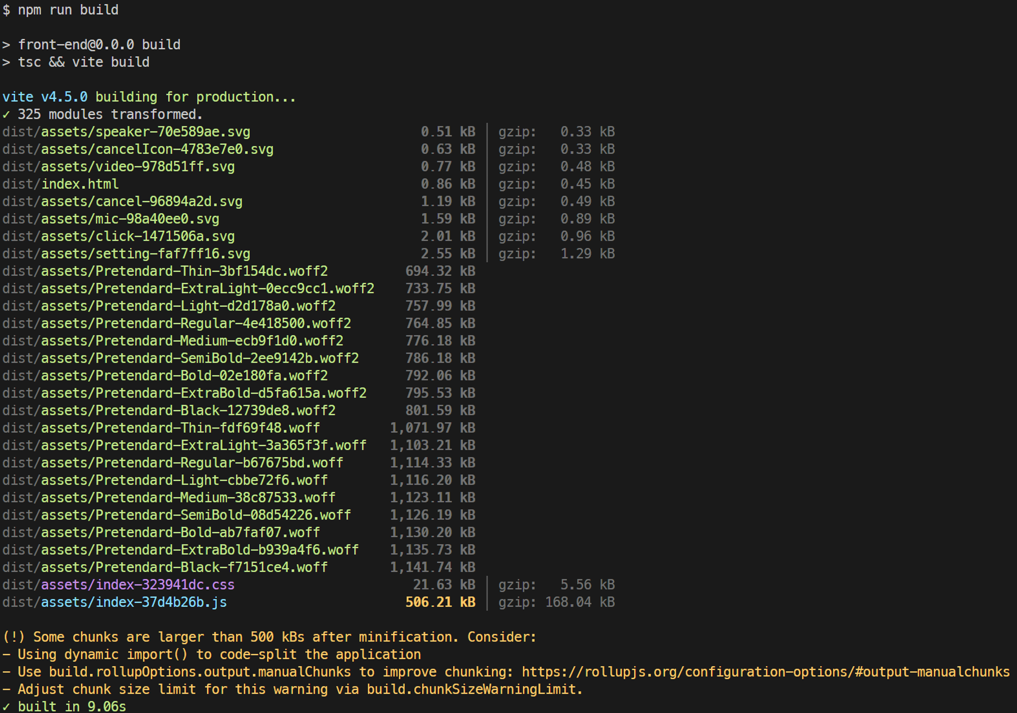 마지막으로 위와 같은 과정을 통해 번들링 크기를 조절할 수 있었으며 초기 로딩에 큰 영향을 준다는 것을 깨닫게 되었다.