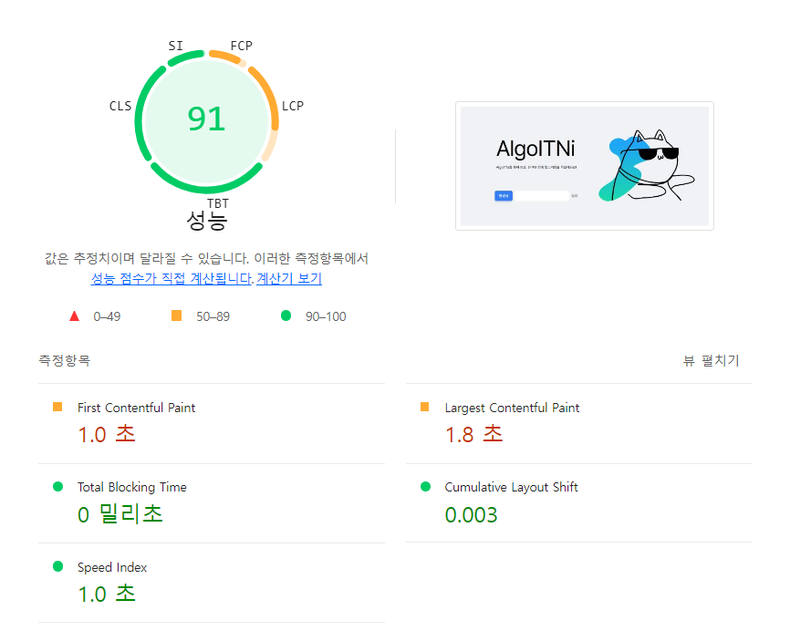 목표 점수를 달성했지만 폰트 최적화 등을 하지 못한 것이 아쉽다.