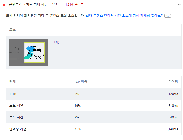 마지막 까지 해결하지 못한 부분은 LCP와 관련된 부분이다.