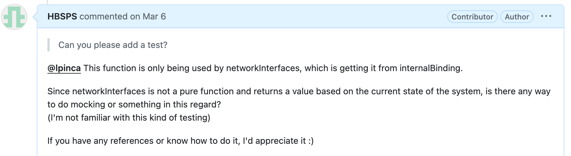 이 함수는 networkInterfaces 내부에서만 사용되고 있었으며 networkInterfaces의 경우 인자가 없고 시스템 정보를 활용하기 때문에 테스트 파일을 작성하는데 어려움이 있었다.