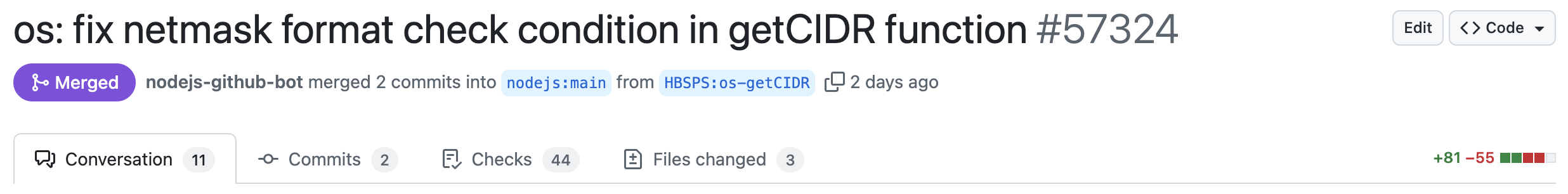 os: fix netmask format check condition in getCIDR function by HBSPS · Pull Request #57324 · nodejs/node