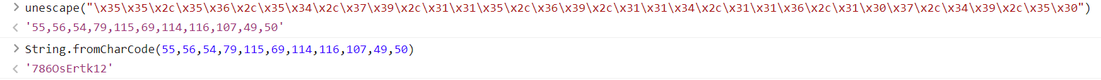 unescape를 통해 10진수의 형태로 바꾸고 전에 봤던 String.fromCharCode()를 통해 해당 아스키코드에 해당하는 문자열을 얻는다.