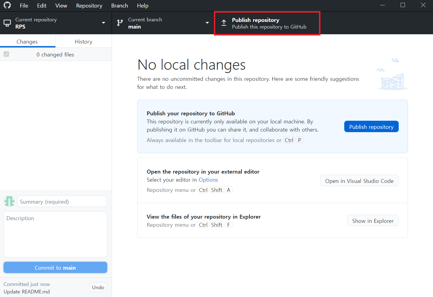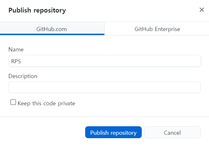 Publish repository를 누르면 위와 같은 화면이 나온다.
