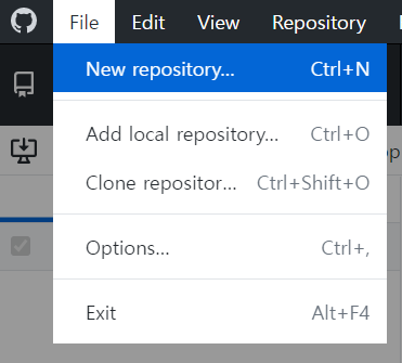 File > New repository에 들어간다.