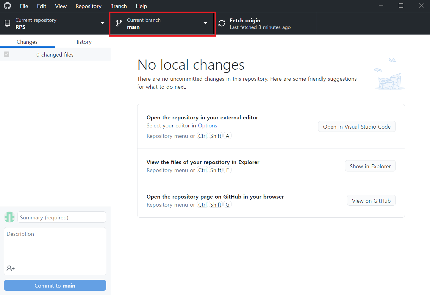 위에 Current branch가 main인 것을 확인하고 코드를 수정한다.