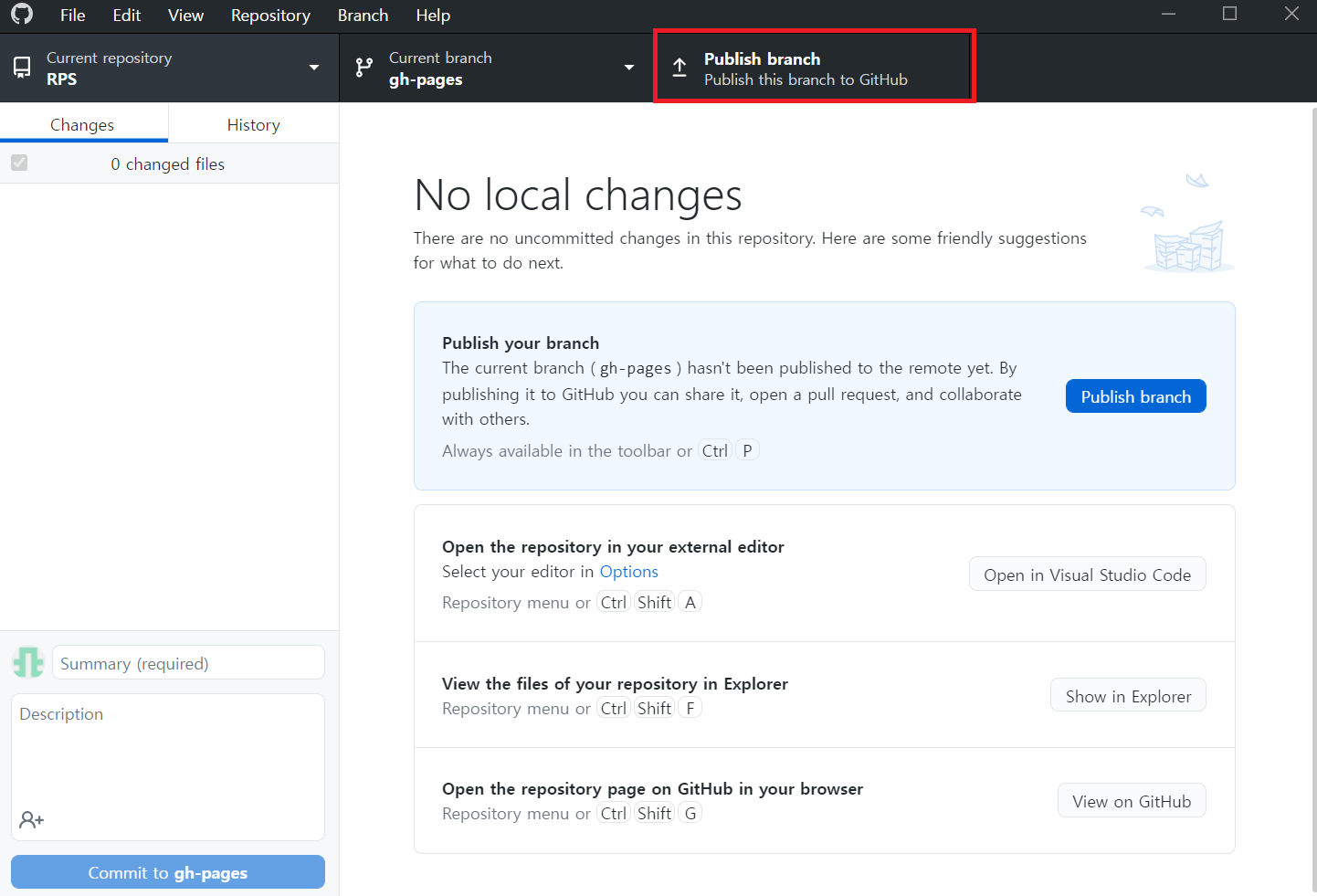 branch를 생성했다면 Publish 해주면 된다.
