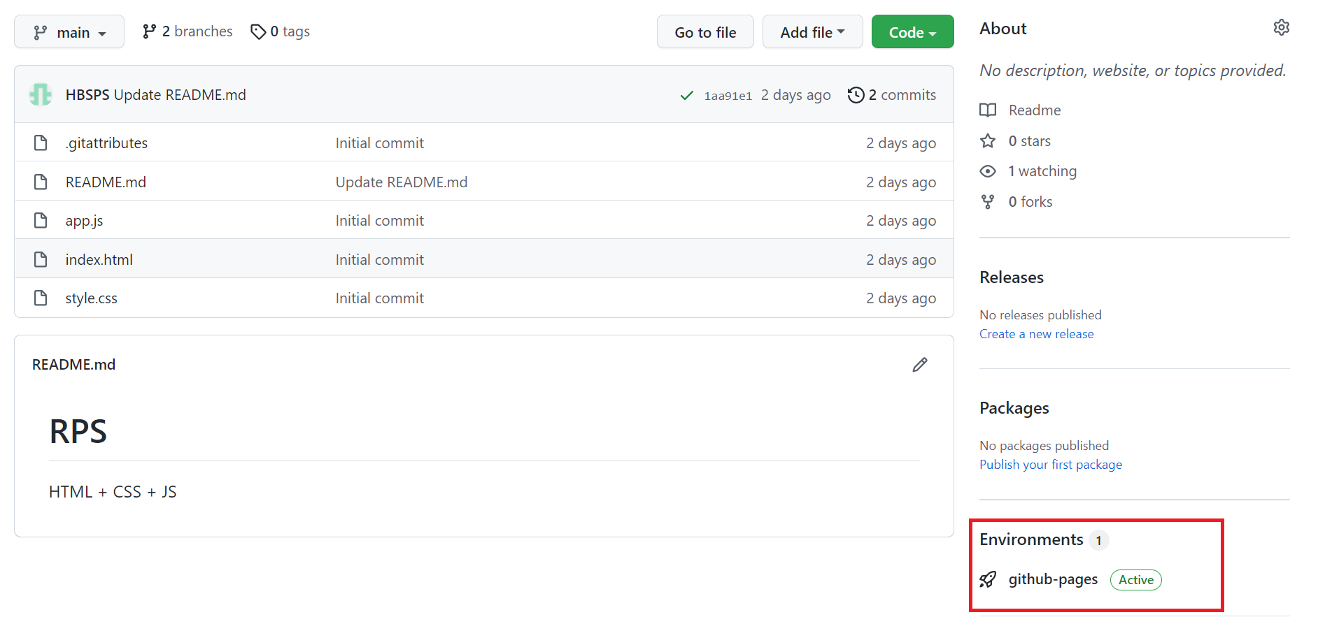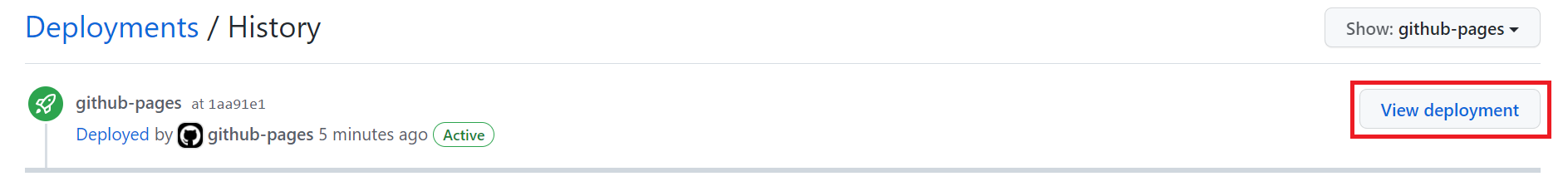 우측에 Environments 탭에 github-pages과 활성화 된 것을 볼 수 있다.